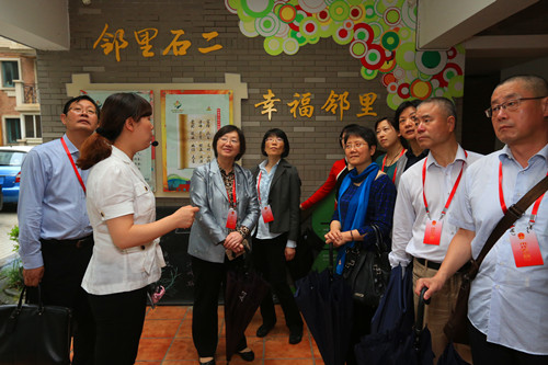 开题会上,代表们围绕专题调研方案,就如何开展好课题研究、进一步充实课题内容进行了讨论,提出了许多好的意见和建议。开题会结束后,代表们还实地参观视察了大宁路街道慧芝湖花园居民区邻里中心、共和新路街道洛善居委会和石门二路街道新福康里居委会。